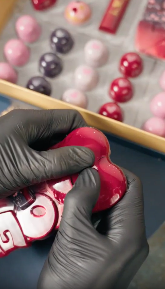 The Love Note Bar Box encapsulates a message of love in the form of chocolate. The centerpiece, a "Love" Chocolate Bar filled with rich caramel and adorned with colorful sprinkles, is a testament to craftsmanship. Accompanied by three chocolate bonbons with painted hearts, this box offers a sweet note of affection.